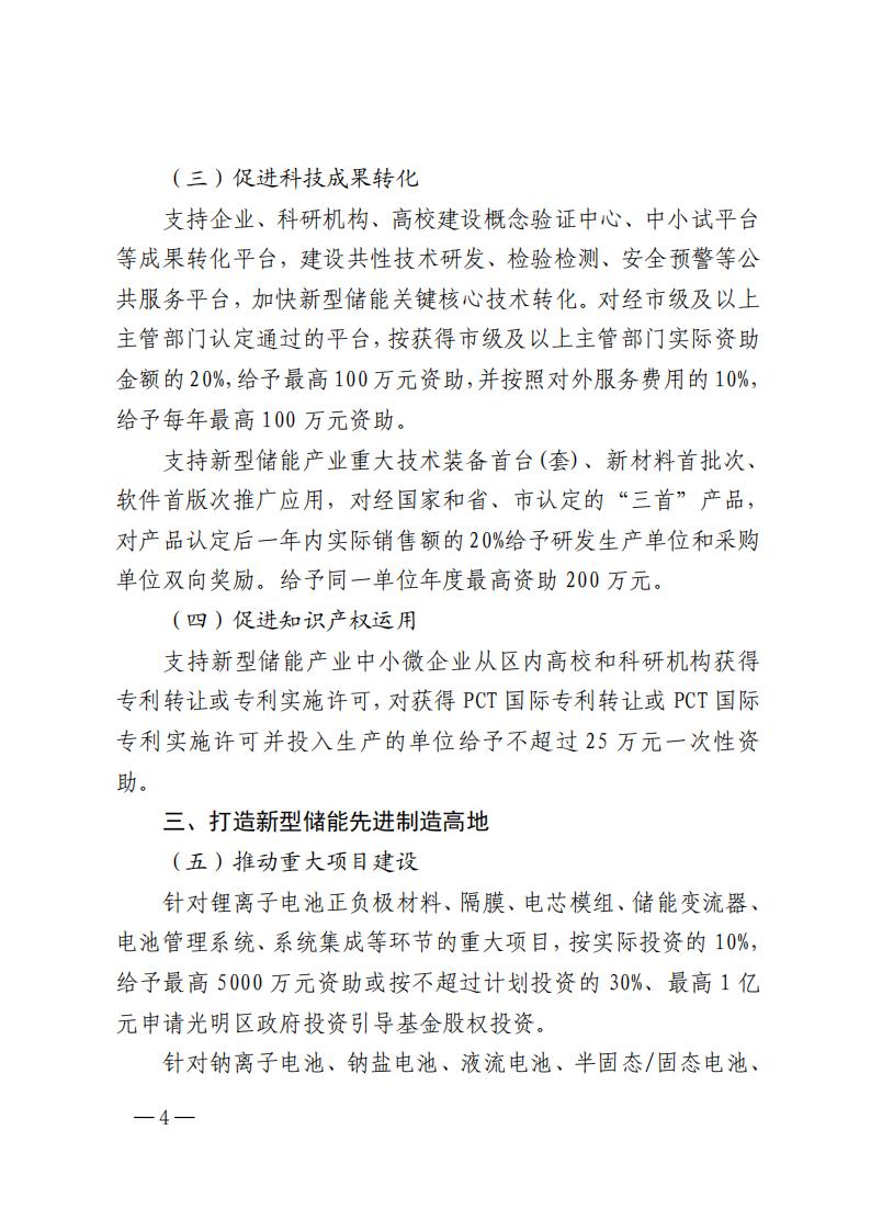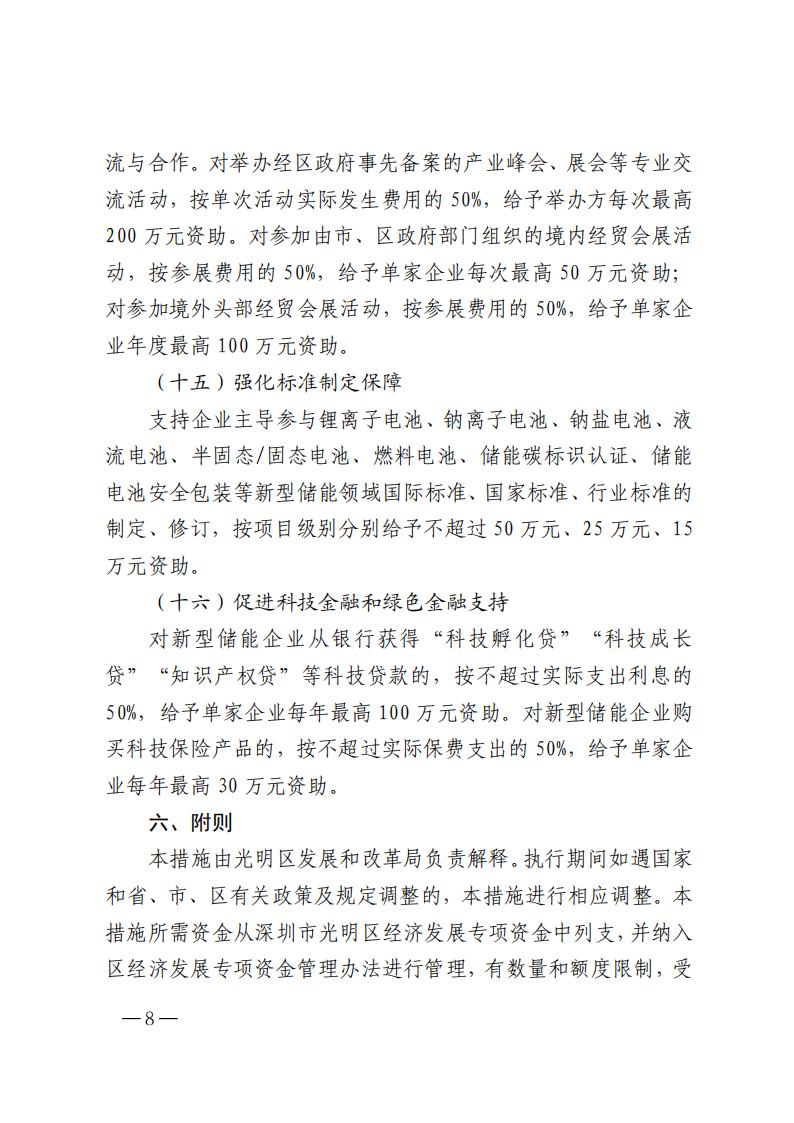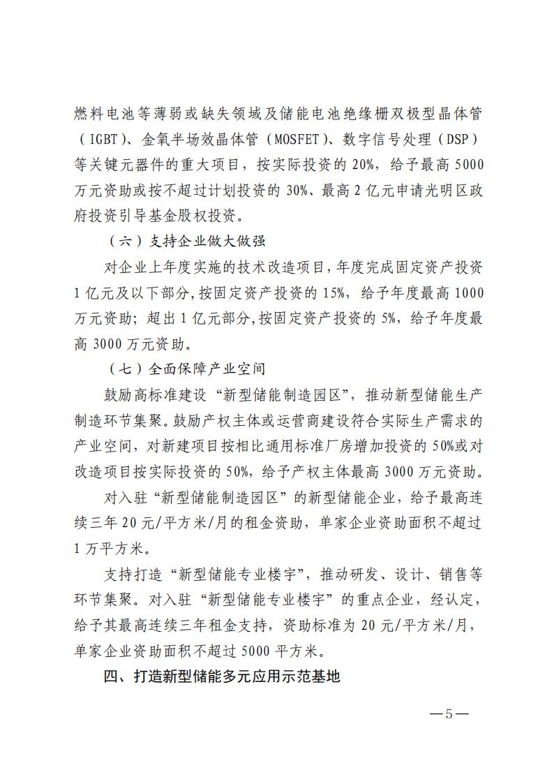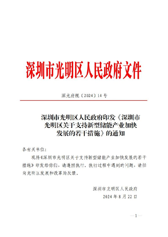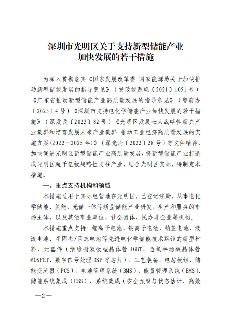 深圳市光明區人民政府印發《深圳市光明區關于支持新型儲能產業加快發展的若干措施》的通知