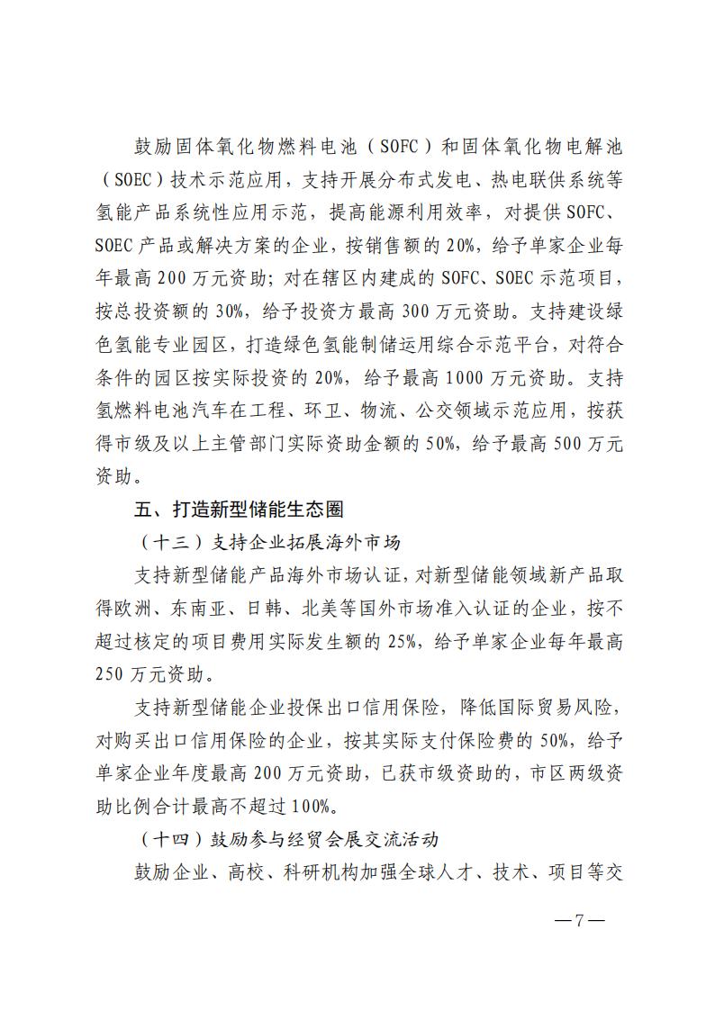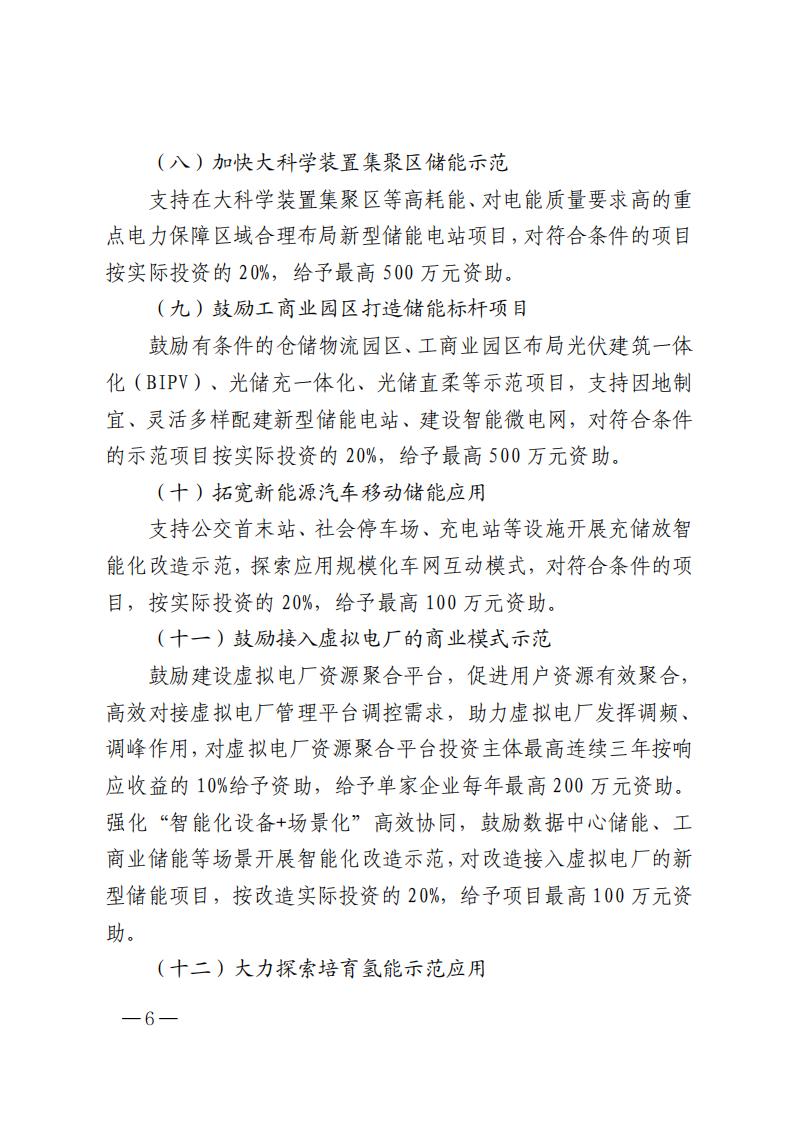 鼓勵有條件的倉儲物流園區、工商業園區布局光伏建筑一體化(BIPV)、光儲充一體化、光儲直柔等示范項目,支持因地制宜、靈活多樣配建新型儲能電站、建設智能微電網,對符合條件的示范項目按實際投資的20%,給予最高500萬元資助。