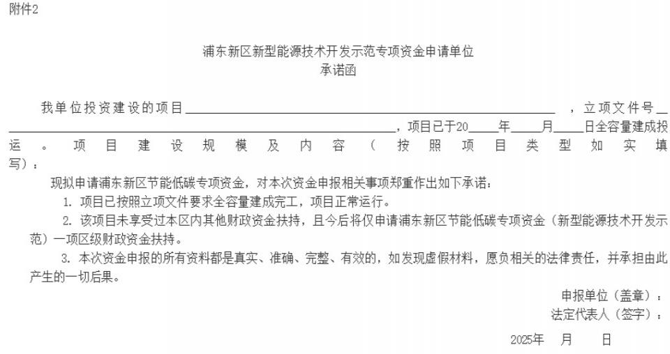 2. 浦東新區新型能源技術開發示范專項資金申請單位承諾函