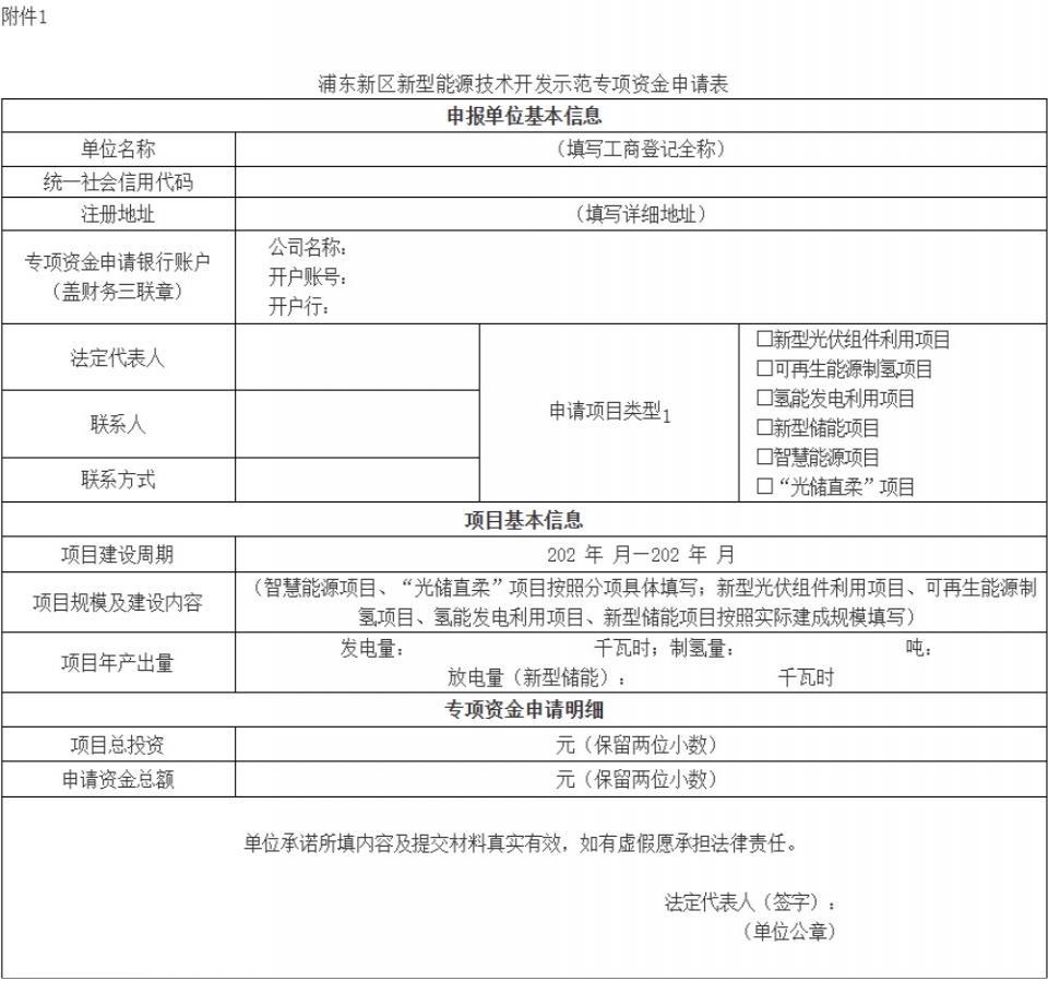1. 浦東新區新型能源技術開發示范專項資金申請表